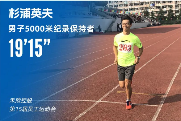 前人的紀錄,就像一座山,翻山不易,卻總能給人攀登的勇氣和動力。每年的男子5000米長跑是最受關注的個人競賽項目,今年總計有32名員工同場競技,張神泉以20′25″23的成績衛冕冠軍,比去年快了50秒。2016年,禾欣可樂麗代表隊的杉浦英夫創下的19′15″的賽會紀錄,迄今未被打破。今年禾欣控股40周年慶典上,回到日本多年的杉浦英夫還在祝福視頻中說:希望我在禾欣運動會的紀錄早點被打破!張神泉也表示,將以19′15″為目標,爭取早日打破紀錄,超越自我!